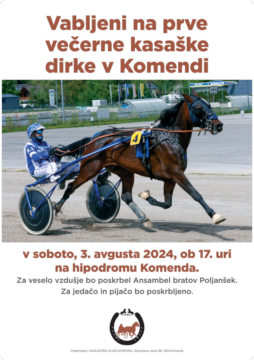 V nedeljo, 26. maja 2024 je Konjeniški klub Komenda organiziral prvi tekmovalni dan v Komendi v letu 2024. To so bile tudi prve dirke po uničujoči vremenski ujmi iz avgusta 2023. Popolnoma obnovljeni hipodrom s sanirano infrastrukturo je tekmovalcem omogočil uspešne nastope z izjemnimi tekmovalnimi časi. 60 nastopajoči konj, 8 izpeljanih dirk in dirka ponijev […]